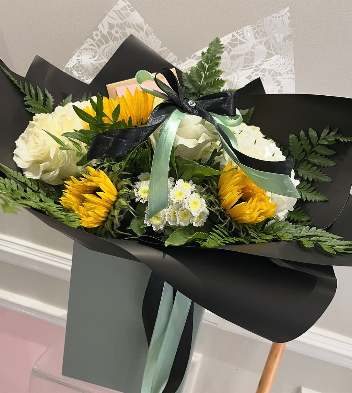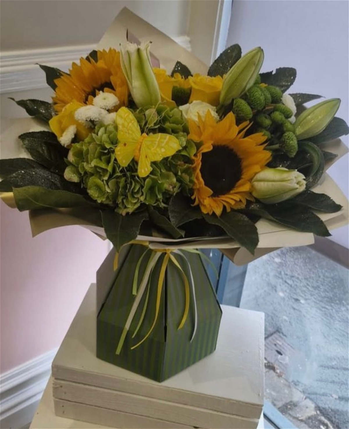 Bring sunshine into any space with our vibrant sunflower bouquet. Featuring large, golden blooms paired with lush greenery, this bouquet radiates happiness and positivity. Perfect for birthdays, thank-yous, or simply to brighten someone’s day, each bouquet is thoughtfully arranged to showcase the natural beauty of these iconic flowers. Hand-tied with care, it’s a cheerful gift that brings warmth and joy wherever it goes.